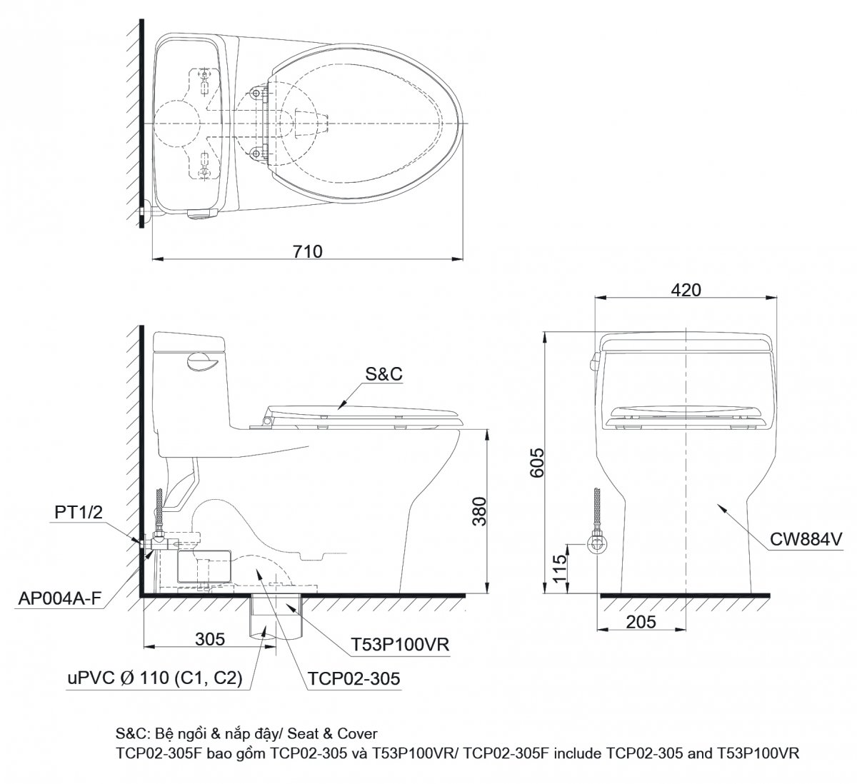 Phù hợp lắp đặt với nắp rửa điện tử WASHLET (tùy chọn)