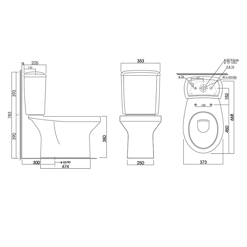 – Bàn cầu 2 khối, nắp đóng êm