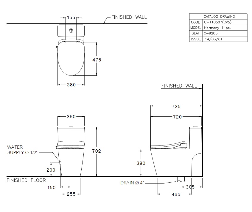 Thân dài, S Trap (305 mm) ,nắp đóng êm