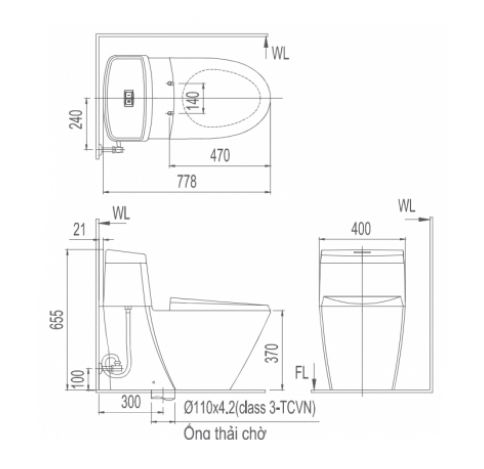 Công suất bệ ngồi: 45W Nhiệt độ bệ ngồi: OFF: nhiệt độ phòng; LOW: ~28oC; MID: ~36oC; HIGH: ~40oC