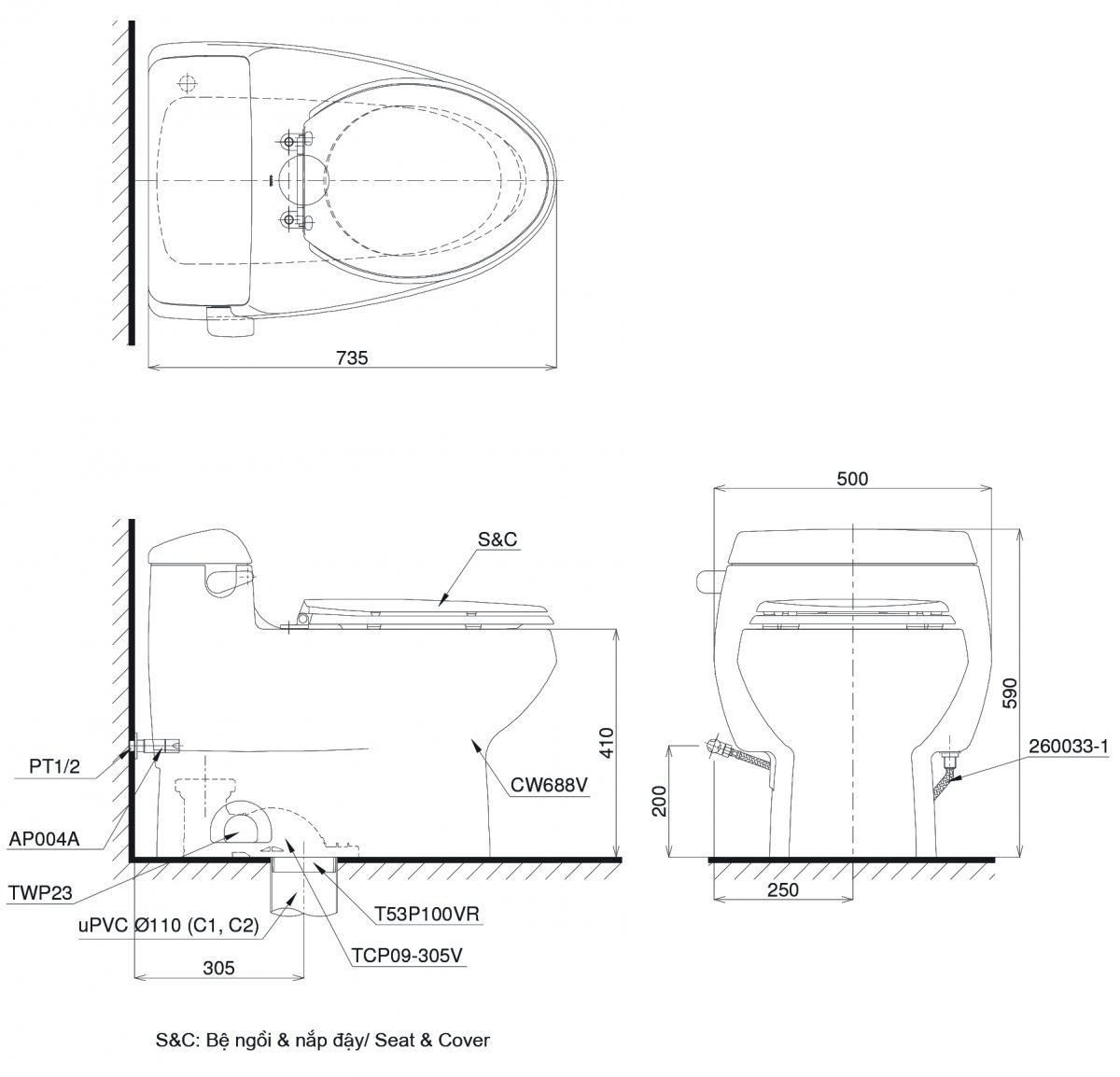Hãy là người đầu tiên nhận xét “Bàn cầu khối TOTO MS688T2”