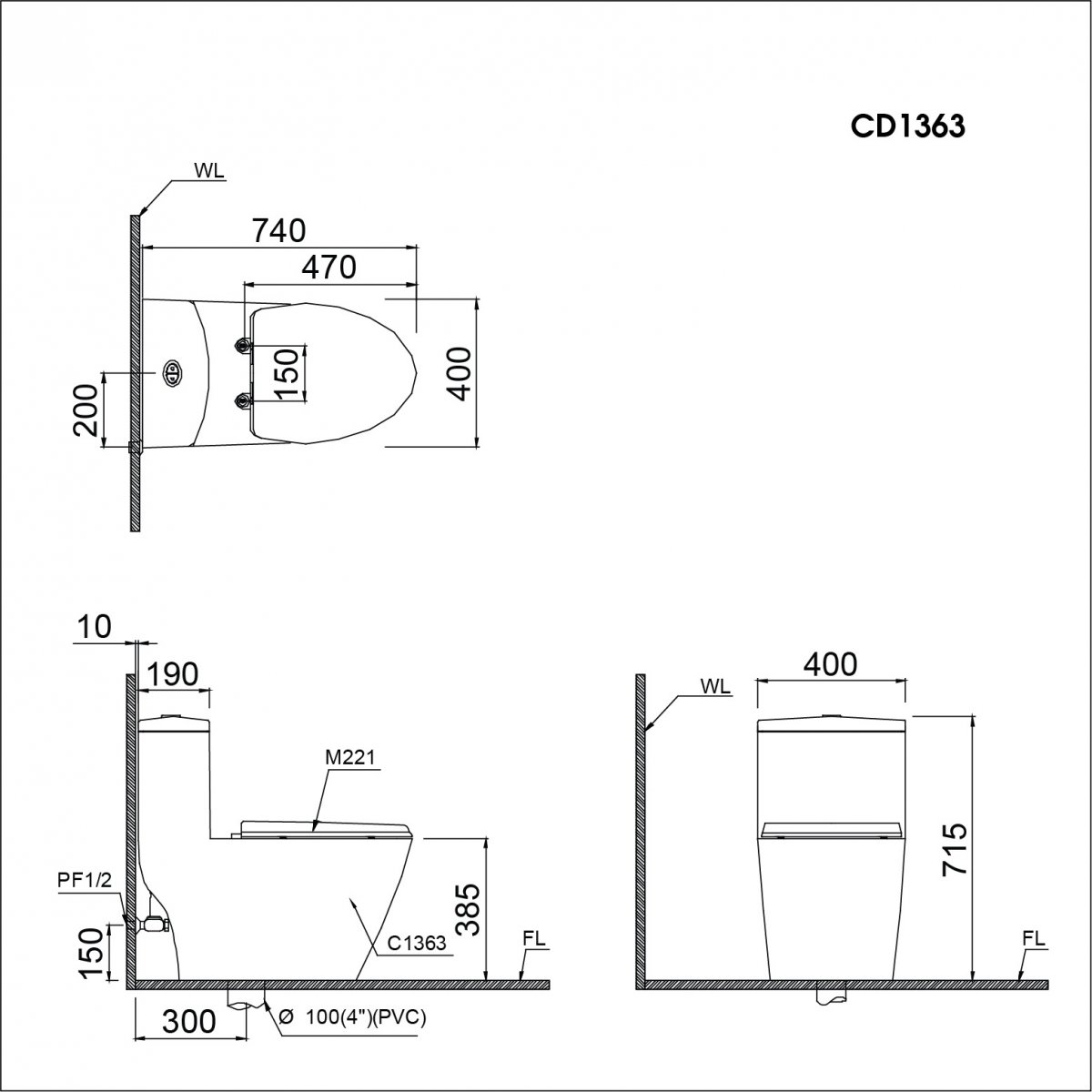 – Tâm thoát phân:300 mm