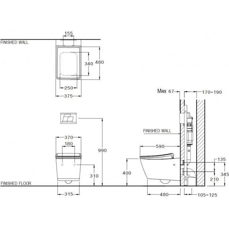 Bàn cầu treo COTTO SC19337 két nước âm tường