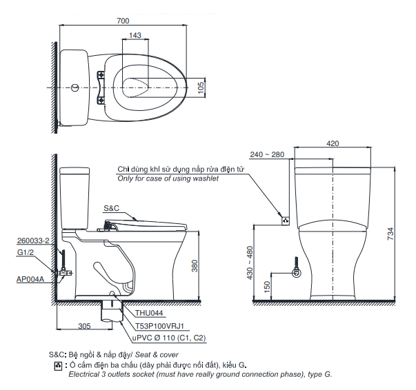 Phù hợp lắp đặt với nắp rửa điện tử WASHLET (tùy chọn)