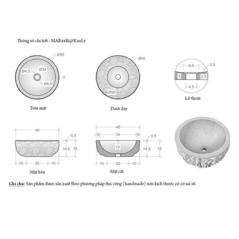 Chậu lavabo đá tự nhiên Kanly MAR14Bi
