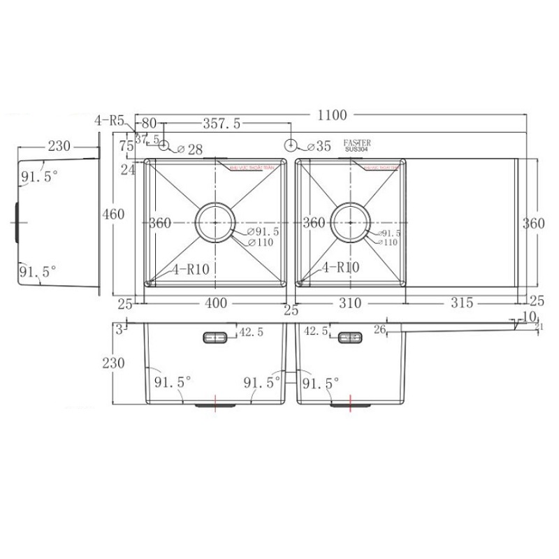 – Kích thước hố nhỏ: 295 x 360 x 200mm