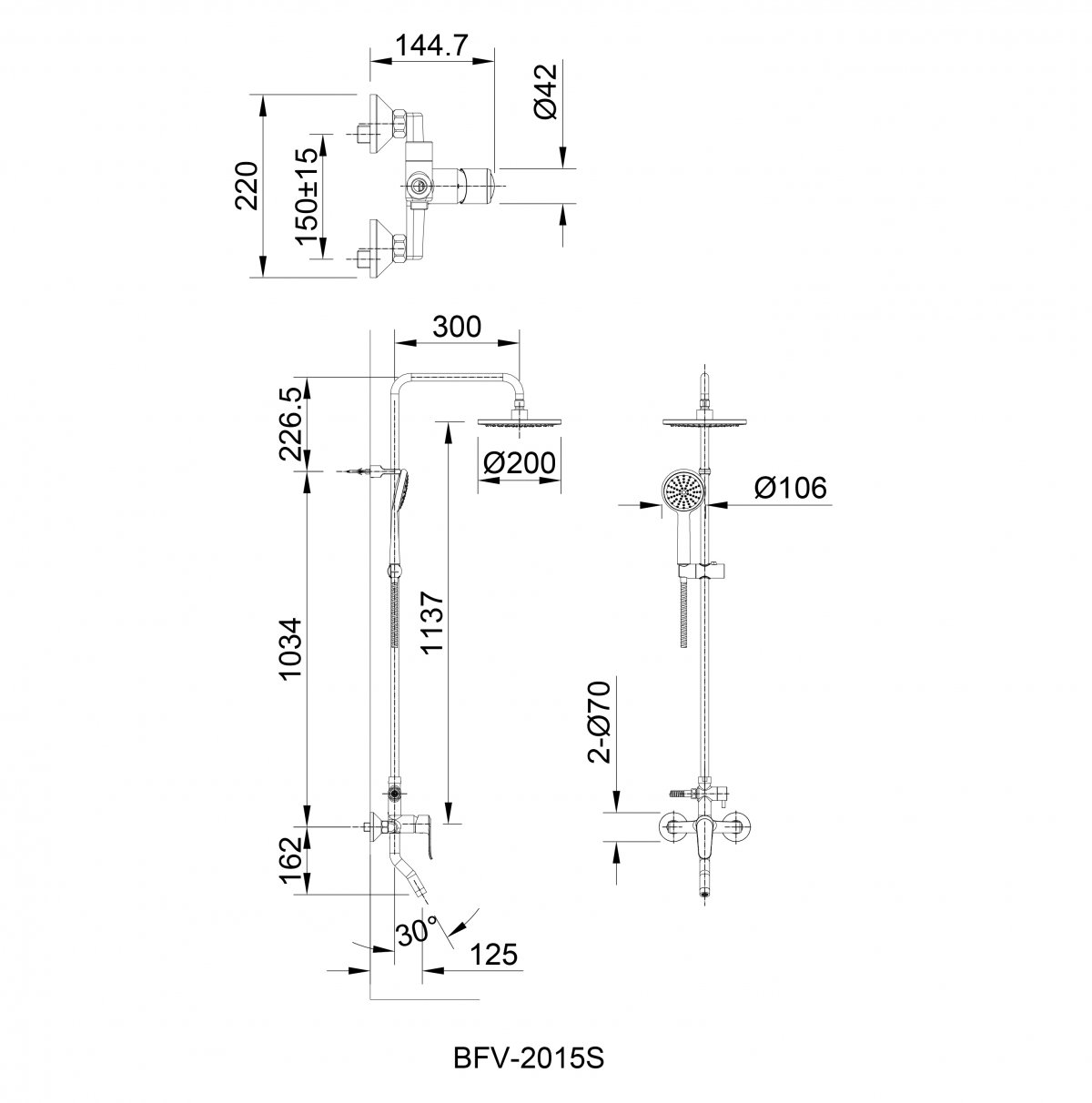 Bản vẽ kỹ thuật vòi cây sen tắm INAX BFV 2015S