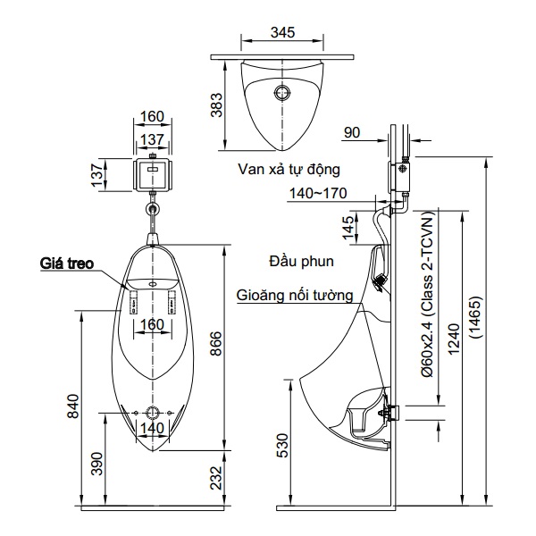 – Sản phẩm bệ tiểu này đã bao gồm đầu phun rửa UF-417R, gioăng cao su nối tường UF-104BWP(VU), ống cấp nước A-U417R(A/B)