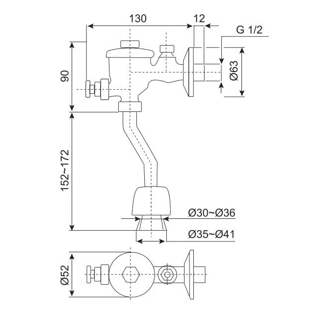 Xả nhấn dùng cho bổn tiểu có lổ cấp nước phía trên