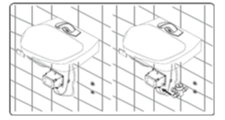Thực hiện các bước trên, tuy nhiên lắp van nóng lạnh vào đầu cấp nước vào của van điện từ trên hộp điều khiển, sau đó lắp ống cấp nước nóng-lạnh vào van nóng lạnh.