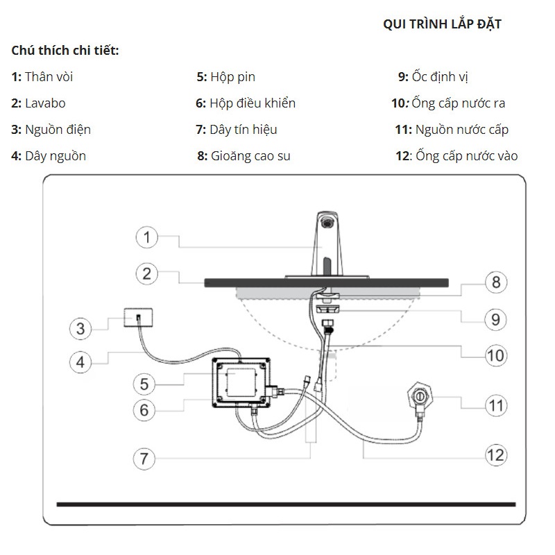 – Khi bạn đưa tay vào vùng cảm ứng, thiết bị sẽ tự động xả nước. Khi bạn đưa tay ra khỏi vùng cảm ứng, sau 1 giây thiết bị sẽ tự ngắt nước