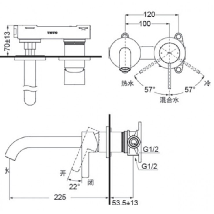 Vòi lavabo gắn tường TOTO TLG11308BA (TLG11308B) nóng lạnh