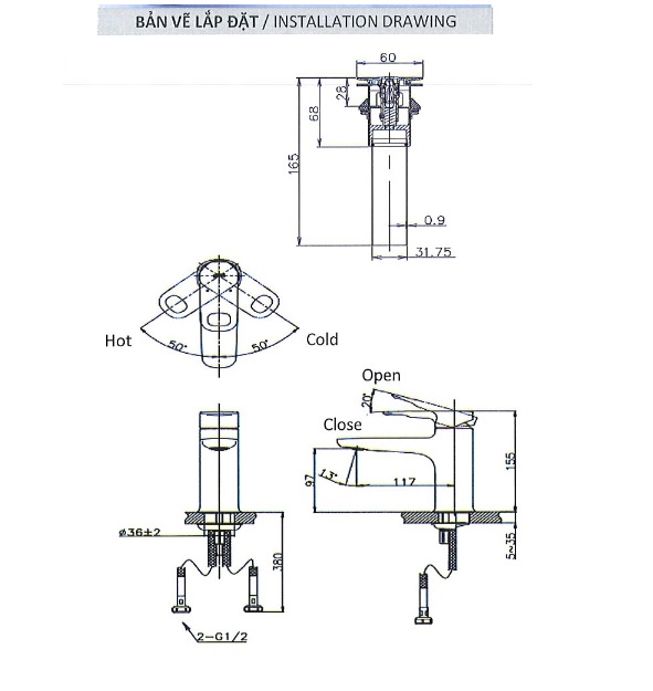 Bản vẽ vòi lavabo INAX LFV-652S