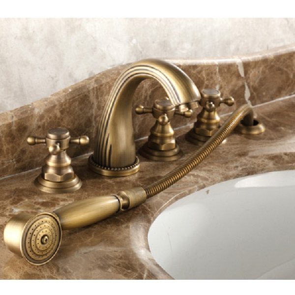 – Bộ vòi xả bồn 5 lỗ, cổ điển, cổ điển, vòi xả vô bồn tắm 5 lỗ, 4 lỗ 3 lỗ, sen tắm bồn, sen xả bồn, tắm nằm, kiểu GCB08 loại vòi xả nước vô bồn tắm có 5 lỗ, bằng đồng thau, dùng cho bồi tắm nằm cổ xưa, nước nóng lạnh, vòi 5 lỗ, vòi nước xả bồn, giả cổ có van nóng lạnh riêng biệt, thân thấp, gắn trên thành, vành bồn tắm, lắp đặt cấp nước lạnh bên phải, nóng bên trái.
