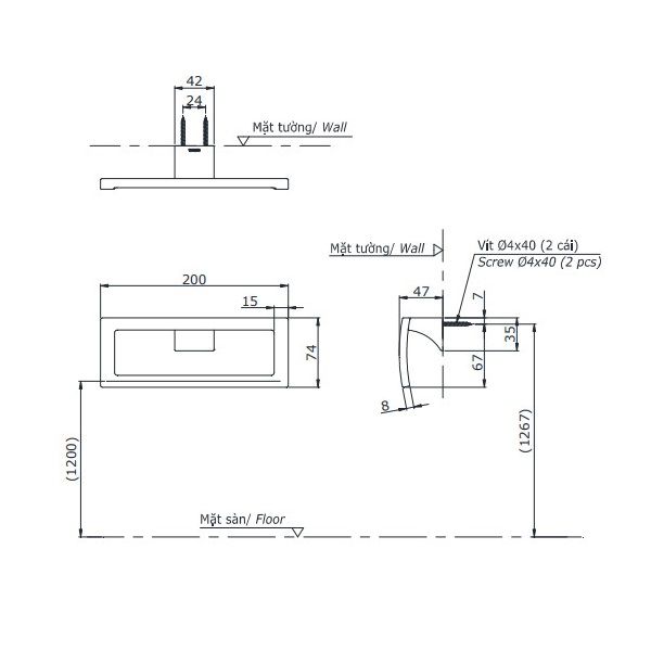 - Kiểu dáng: Gắn tường